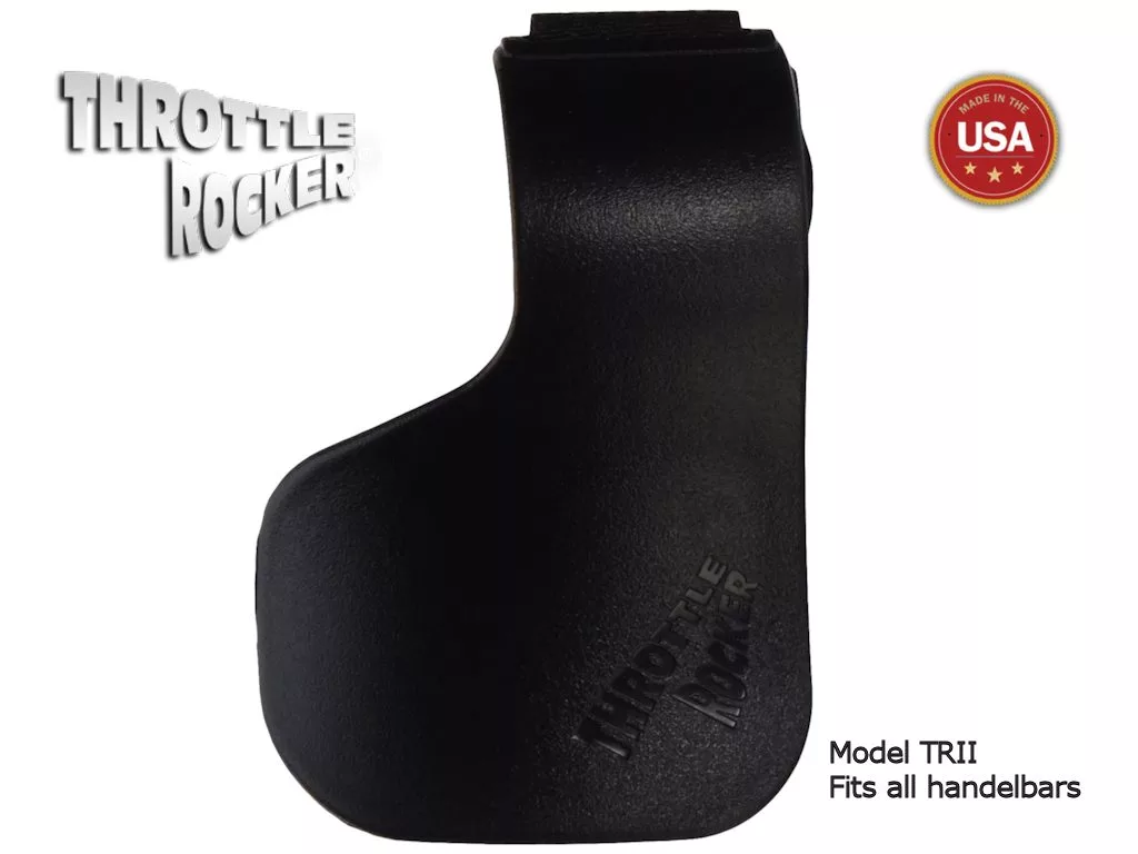 With a Throttle Rocker the grip won’t have a tendency to slip because your fingers are getting tired, so you won’t have to constantly reposition your hand to maintain speed. You can operate the throttle with a relaxed hand. It greatly reduces hand fatigue and cramping. It comfortably fits the heel and palm of your hand. It’s easier to operate the throttle. Eliminates throttle “creep” due to hand fatigue. It is not a throttle lock.